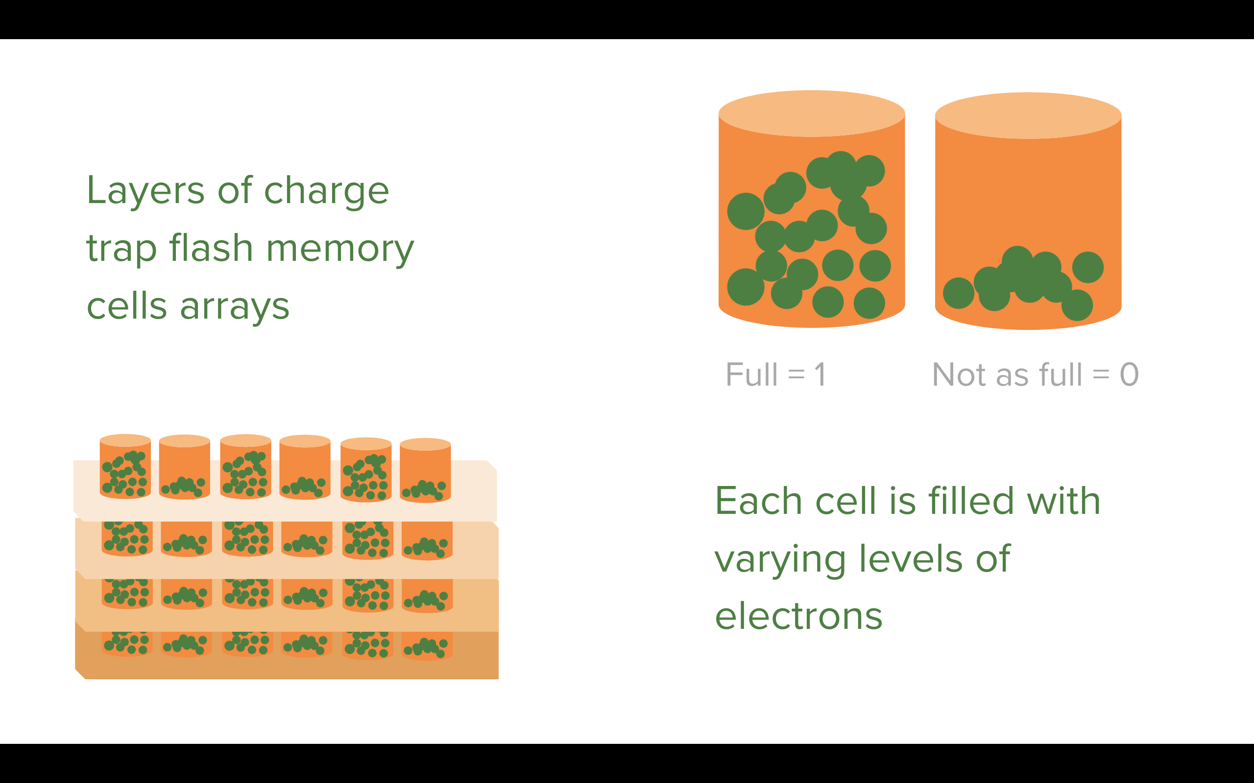 presenter notes Great video to watch that clearly explains how SSD technology works: https://www.youtube.com/watch?v=5Mh3o886qpg You have likely encountered solid state drive technology if you have ever used a laptop, or a smartphone, or flash drive. Layers of charge trap flash memory cells arrays Each cell is filled with varying levels of electrons